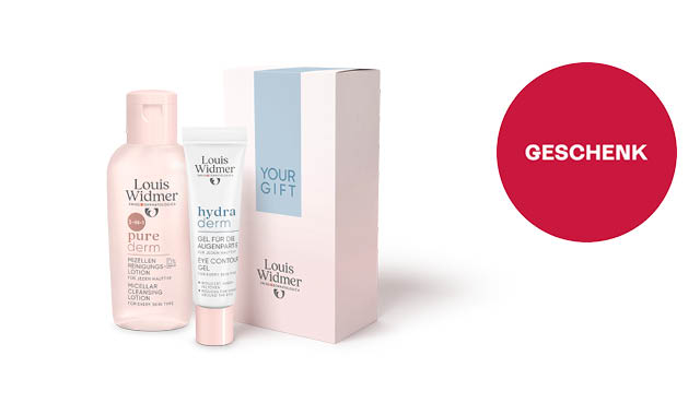 Beim Kauf von zwei Produkten erhalten Sie ein Pflegeset mit einer purederm Mizellen Reinigungslotion (50 ml) und ein hydraderm Gel für die Augenpartie (7,5 ml).